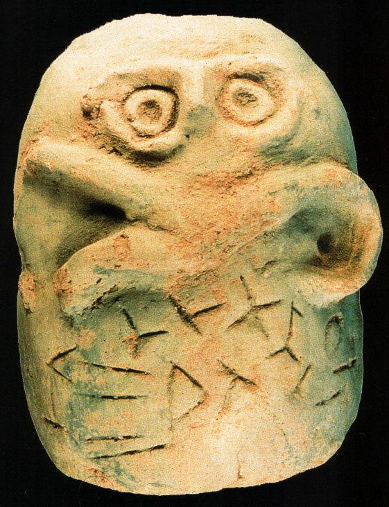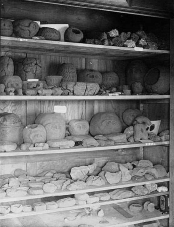 Los objetos de cerámica, ídolos; vasos mortuorios con máscaras extrañas desprovistas de boca; y las famosas tablillas cubiertas de inscripciones todavía desconocidas; fueron fabricados en un horno ovalado que en principio fue confundido con una tumba.